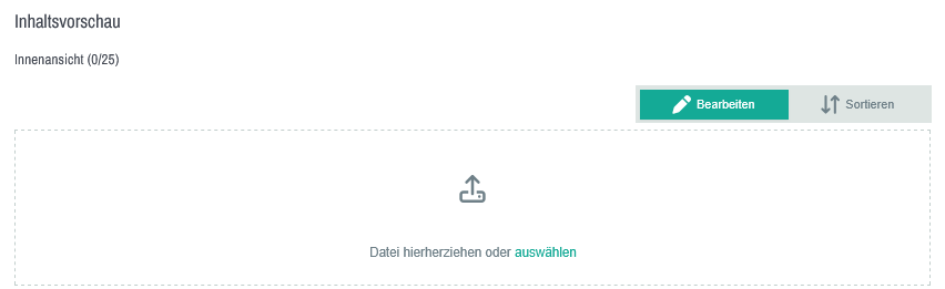 Wenn Sie neben Bild des Urhebers und Cover weitere Mediendateien wie eine Leseprobe oder einen Innenansicht für das Produkt hochladen wollen, gehen Sie bitte wie folgt vor: