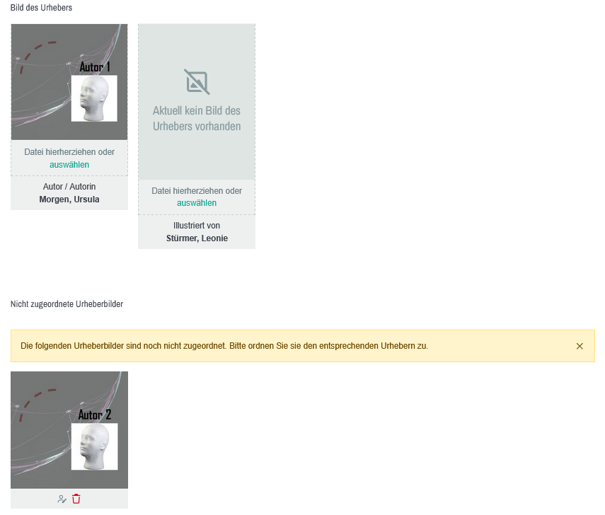 - Sie können ein nicht zugeordnetes Urheberbild löschen, in dem Sie das Mülleimer-Icon anklicken.