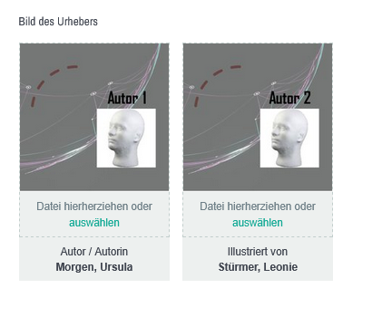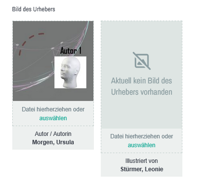 Im Abschnitt "Bild des Urhebers" werden Ihnen die Namen aller UrheberInnen, die Ihr Produkt hat, mit Ihrer Rolle, z.B. Autor /Autorin angezeigt. Um eine Mediendatei einem bestehenden Titel hinzuzufügen, gehen Sie bitte wie folgt vor: